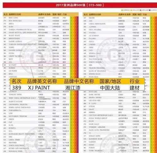 湘江涂料——中國(guó)一家進(jìn)入亞洲品牌500強(qiáng)的涂料企業(yè)